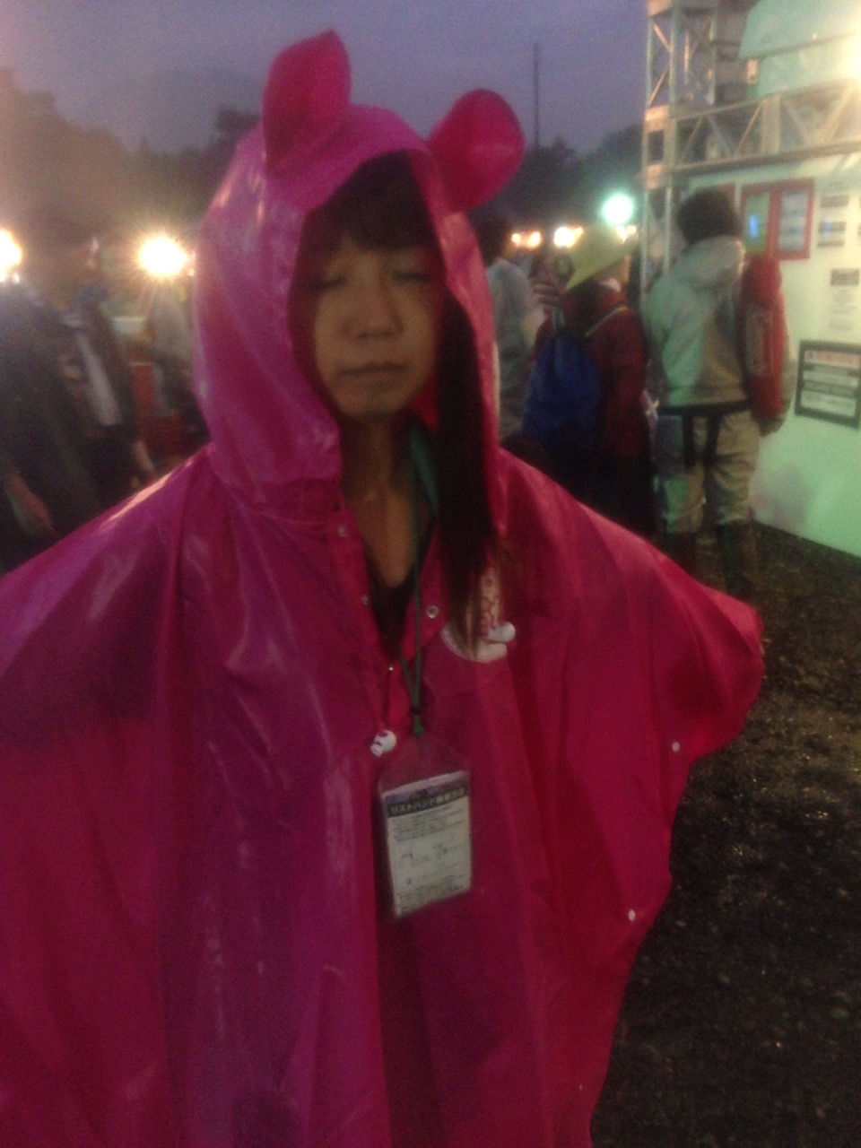雨降ったから猫耳レインポンチョが大活躍。